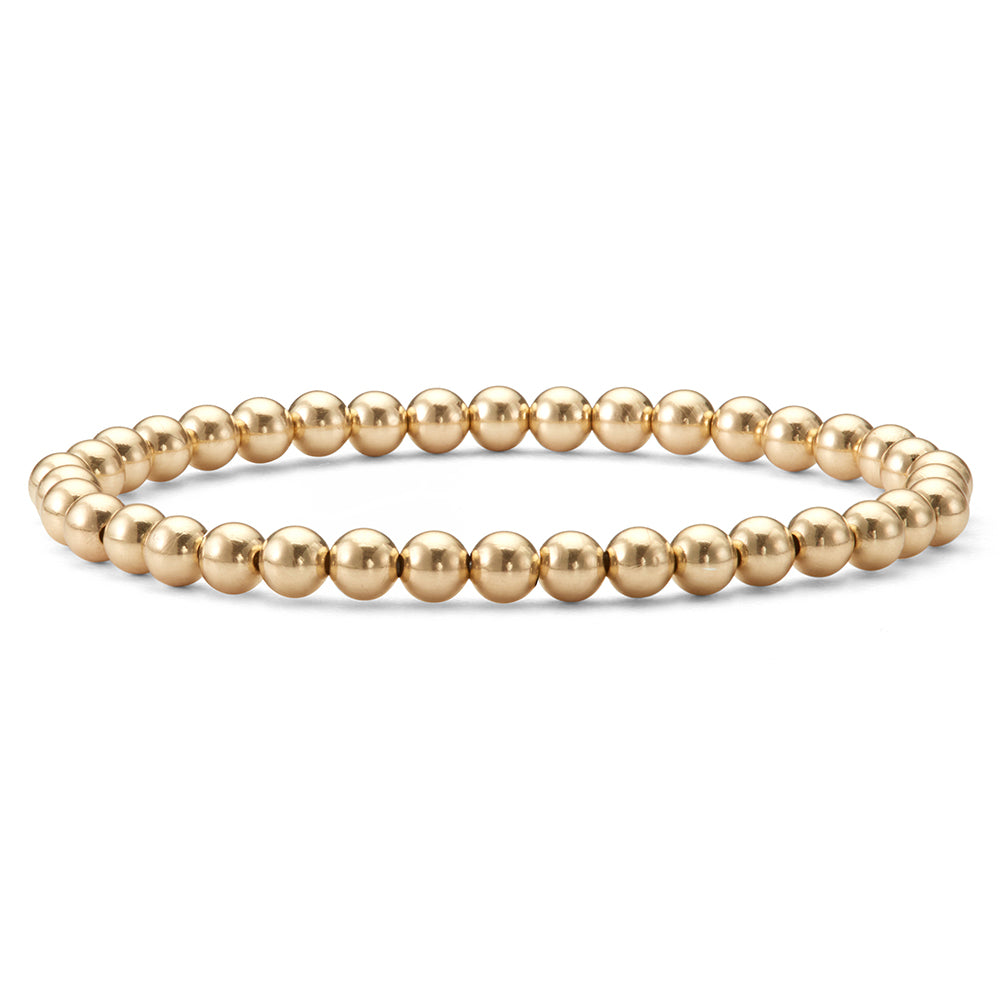 Large gold plated beads on stretch. This gold bracelet is the perfect companion to our Personalized JOY nameplate, word of intention and/or mantra bracelets.