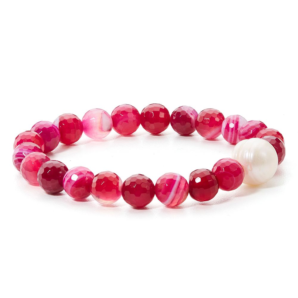7" of faceted fuchsia agate beads with a freshwater pearl on stretch.