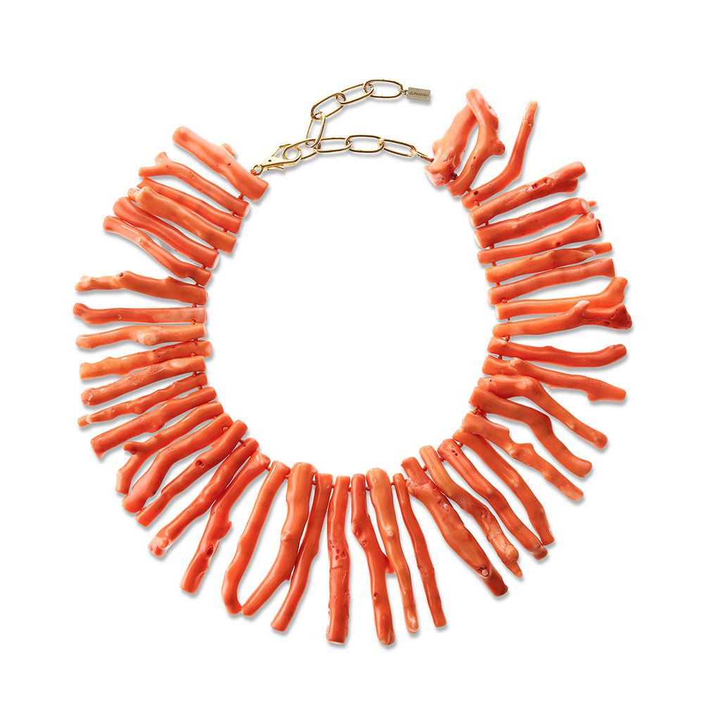 20" of vibrant coral beads on silk with a clasp that allows it to expand up to six more inches. This one of a kind necklace has nice weight to it and a subtle chime sound with movement.